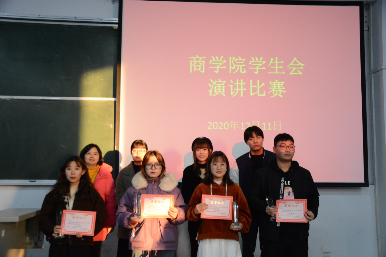 率先出场的是文礼部参赛队,他们以“坚持”为主题,讲述中国发展道路的曲折,新时代大学生应做到不忘初心,坚定前行;在随后出场的参赛队分别围绕“勇敢”、“爱国”、“友谊”等主题,选手们用充满感情的演讲展现了当代大学生饱满的精神风貌。经过激烈角逐,团总支办公室最终以90.75的高分荣获演讲比赛第一名,学生会办公室、组织部、活动策划部并列第二,荣获二等奖,纪检部、学习部、外联部、文礼部四个部门并列第三,荣获三等奖。