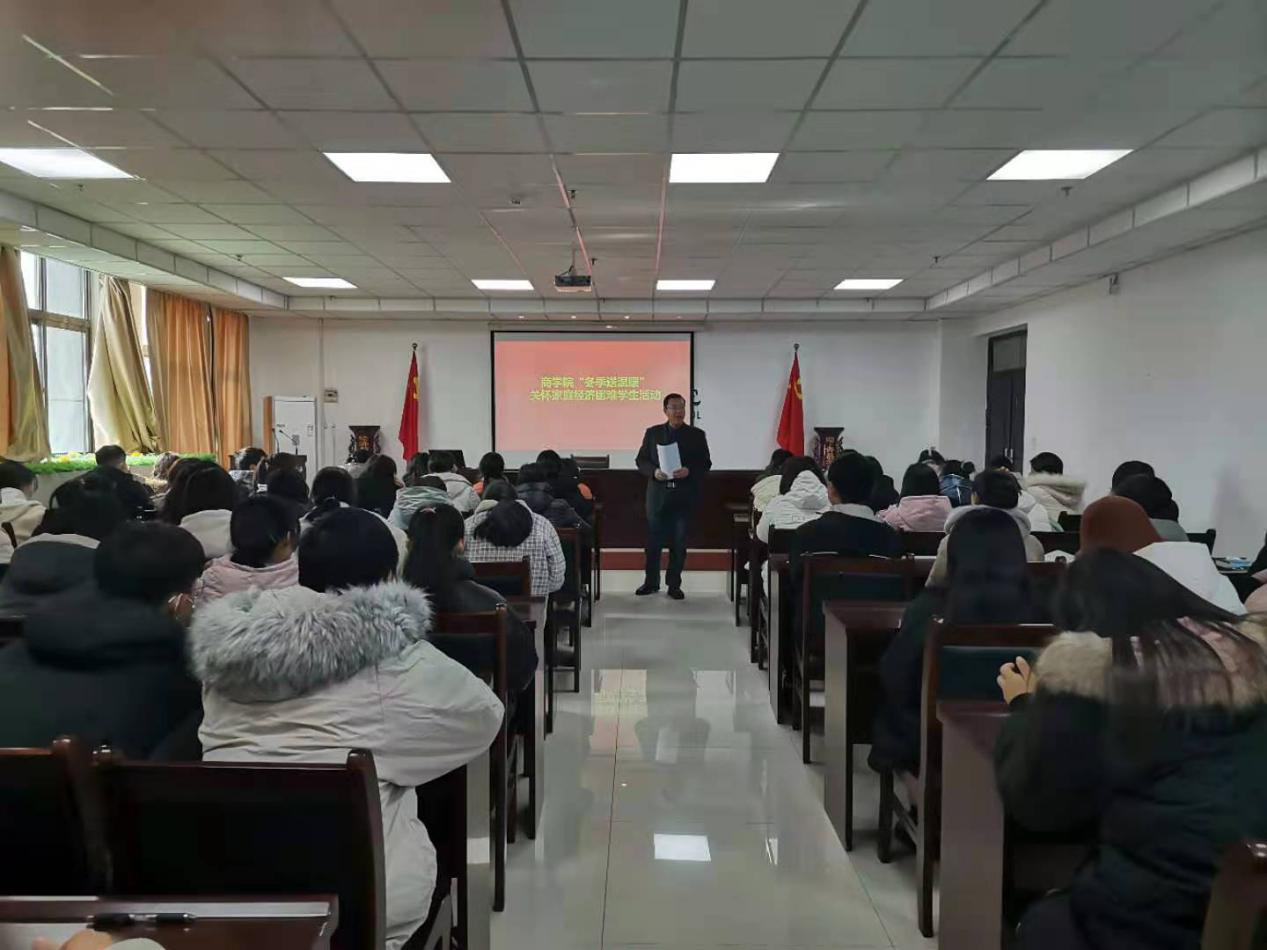 寒冬时节送温暖,浓浓关爱是真情。为把对家庭经济困难学生的关怀落细落实,确保商院学子安心读书,顺利返乡,2021年1月6日中午,商学院在文综楼1302举办了“寒冬送温暖,情暖学子心”冬季送温暖活动。商学院党委副书记海泳、辅导员老师张小萍以及20级家庭经济困难学生参加了此次活动。