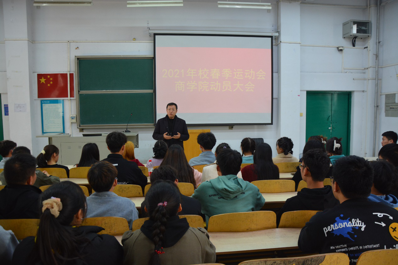 为充分调动商学院运动员的积极性,争创佳绩,“2021年校春季运动会万象城allwincity官网动员大会”于3月12日下午四点二十在A合五教室举行,大会由商学院党委副书记海泳主持,万象城allwincity官网学生会体育部成员和运动会选手参加。