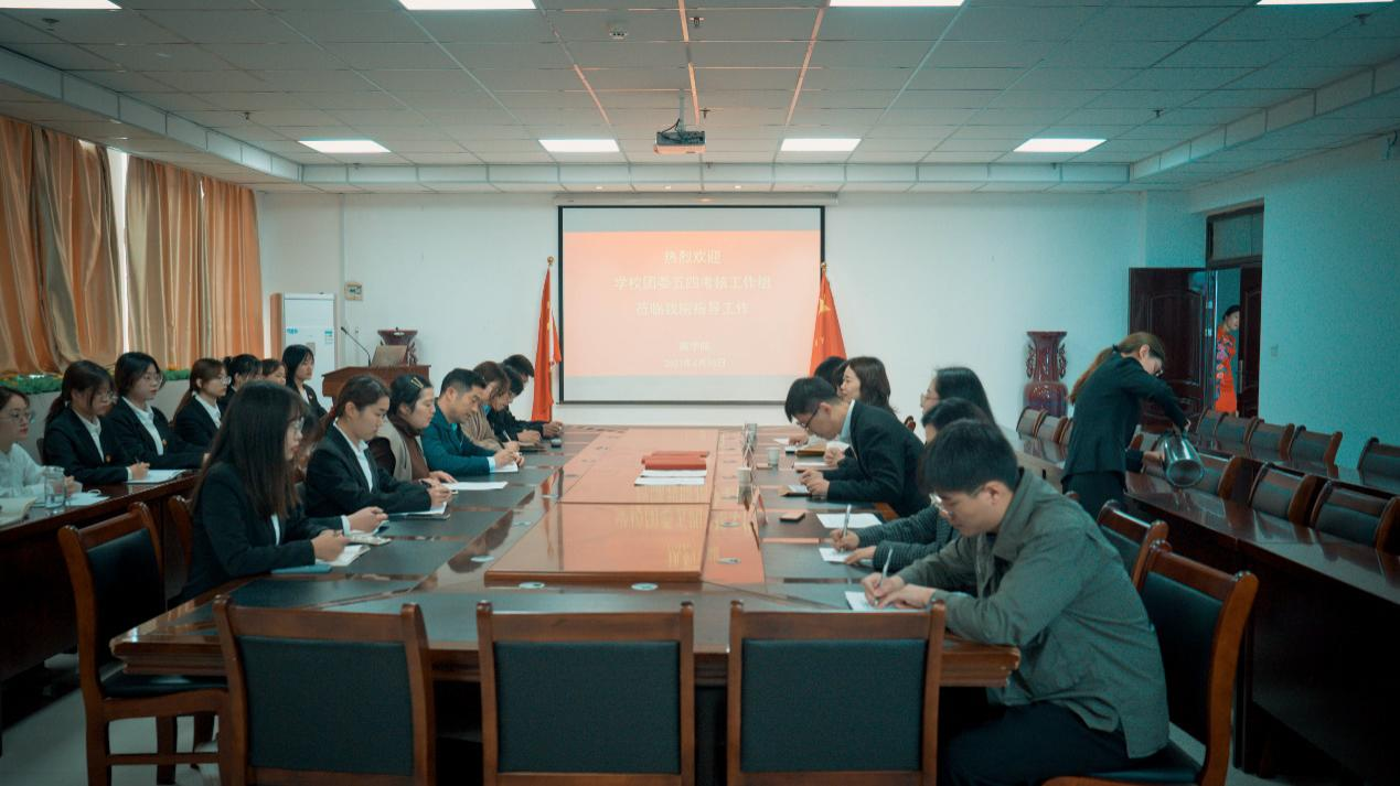 4月16日上午,校团委五四考核工作组在校团委副书记易文翰、文史与传媒学院团委书记訾冉一行五人,对万象城官网2020-2021学年共青团和学生会工作的落实与建设进行考核督导。会议分为团委工作、学生会工作考核会议两个会场。院党委书记翟广辉、院团委书记谭芳丽及学生会各部门主要负责人参加会议。