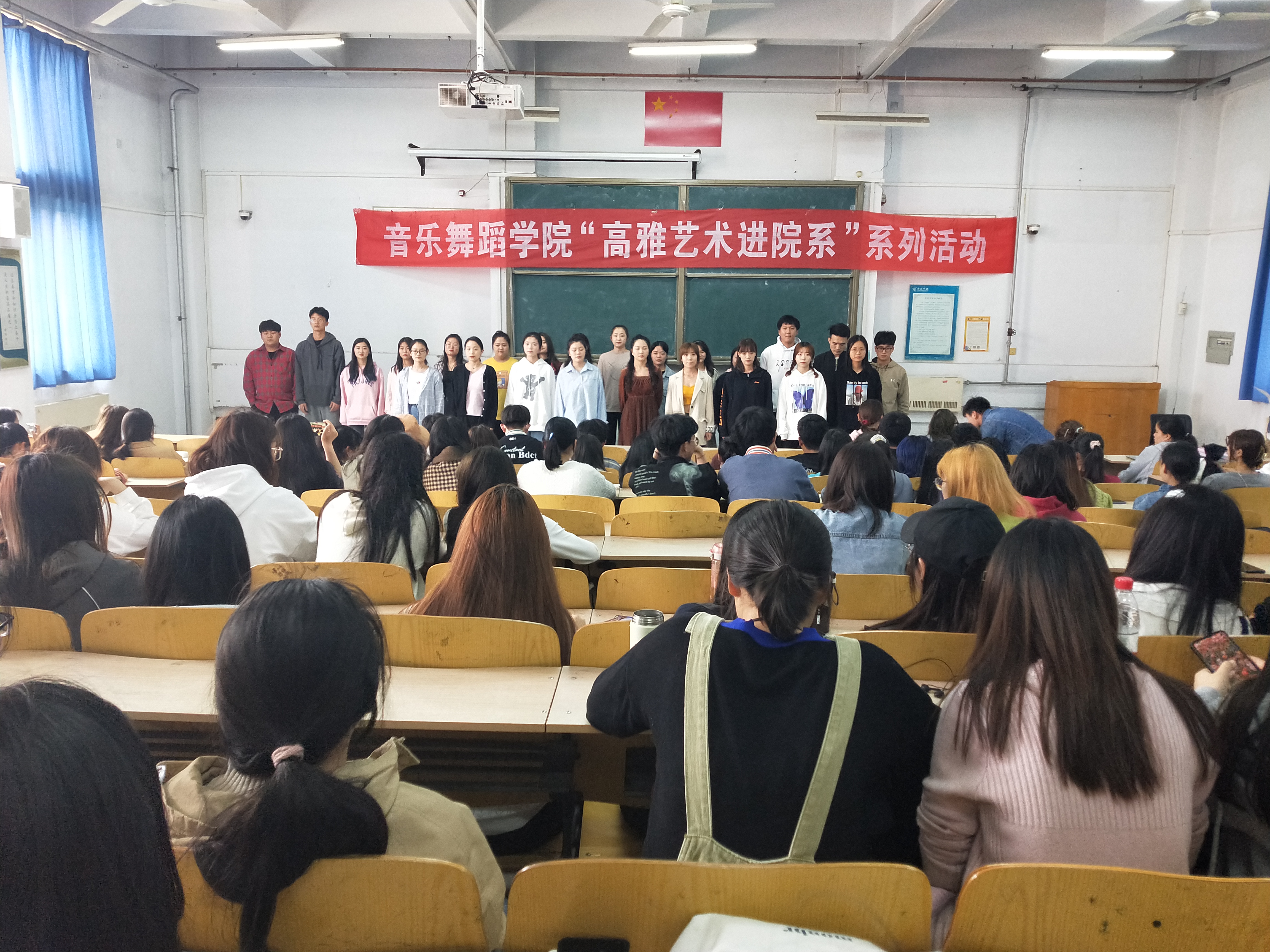 4月16号日下午,为纪念中华人民共和国建党一百周年,万象城官网与音乐舞蹈学院联合举办了“高雅艺术进校园”活动。活动在合唱《灯火里的中国》拉开了帷幕,经典曲目《卡农》缓缓的琴弦上激荡,牛珂欣,付祎琳同学的《贝加尔湖畔》、舞蹈团的爵士舞蹈《bass》、魏正轩同学的二胡演奏《草原新牧民》、青音吉他社的《柠檬树》、王梦迟、郭忠洁同学的大提琴演奏《小步舞曲》,精彩纷呈的展演赢得了观众的热烈掌声。