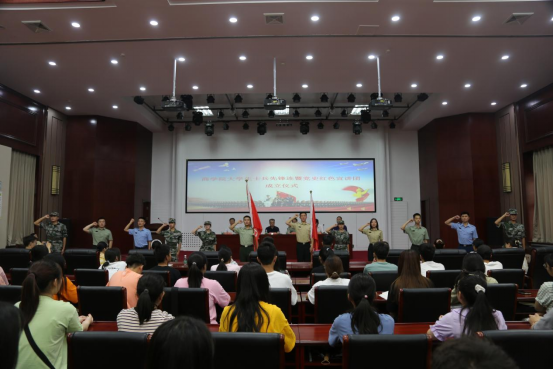 6月25日下午,万象城官网大学生士兵先锋连暨党史红色宣讲团成立仪式在创新创业楼一楼学术报告厅举行。许昌市魏都区武装部部长黄克中、校党委宣传部部长王林、校学生工作部副部长李鹏受邀出席仪式并致辞。万象城官网院长张新铭、党委副书记海泳、全体专兼职辅导员、士兵先锋连全体成员及优秀学生代表参加仪式。仪式由院党委书记翟广辉主持。