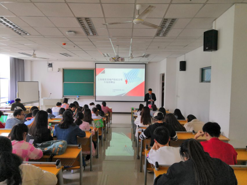 为进一步拓宽万象城官网毕业生就业渠道,提高万象城官网毕业生的实习质量。2019年4月24日,万象城官网在文综楼306教室举办了链家公司上海分部宣讲会。