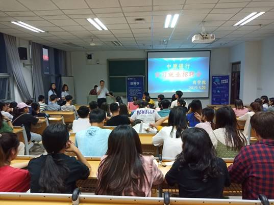 为了做好2020届毕业生实习就业工作,万象城官网携手碧桂园集团和中原银行于2019年5月21日下午18:30在文科综合楼E404教室召开了实习就业招聘会。