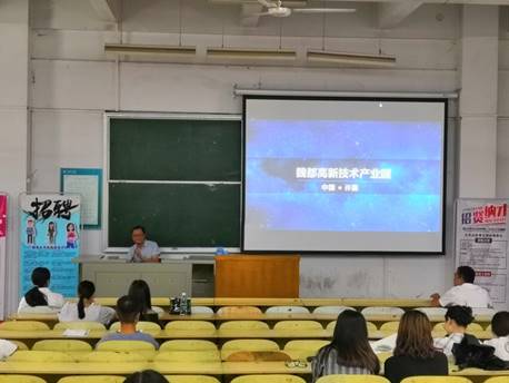 在招聘会上,毕业于许昌学院、现就职于魏都高新技术产业园的志玲学姐为同学们讲述自己从学校毕业后的工作经历,并简单讲述魏都高新技术产业园的情况。接着,魏都高新技术产业园有限公司的副总经理通过PPT展示了公司的主营业务、战略发展架构和未来的建设计划等。负责人表示,魏都高新技术产业园有限公司是斥资7.1亿建设的国家级双创技术中心分部,重视科技与创新,是年轻大学生发展自己的良好平台。